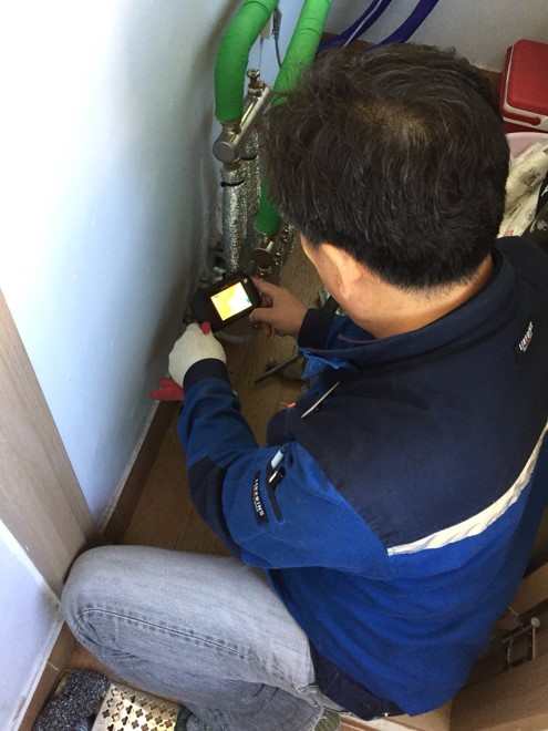 난방배관 누수 같은 경우 열화상카메라를 사용하여 누수가 발생한 부분 주위로 따듯한 물이 번져있는 곳을 찾은 후