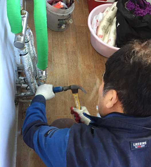 ② 확실한 확인 및 본격적인 누수탐지를 위해 난방 배관에 압력을 넣습니다.