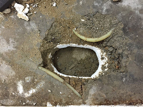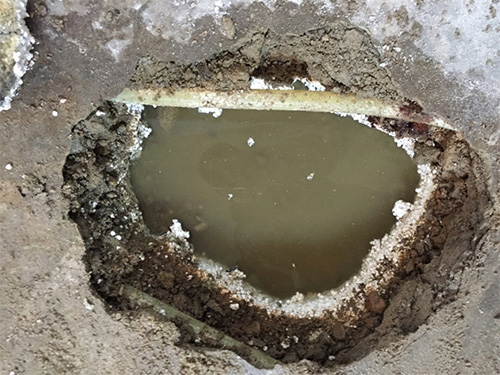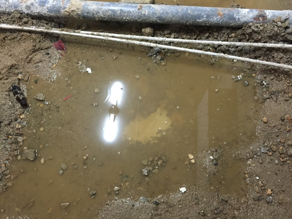 – 바닥을 어느 정도 걷어내니 물이 이렇게 고여있었습니다.