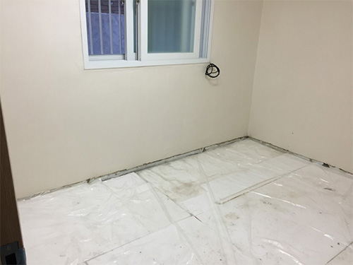 – 방수층이 다 마른 후 바닥에 보온 및 습기가 올라오는 것을 차단하기 위해 단열제와 비닐을 설치합니다.