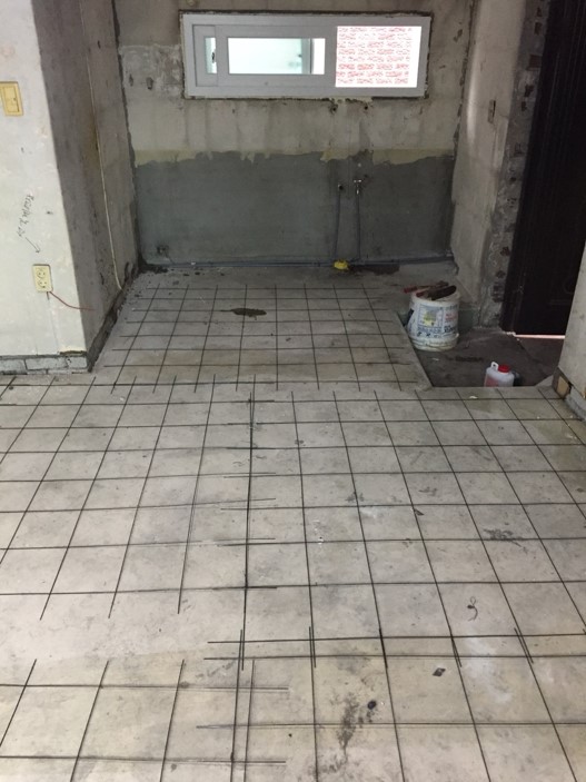 – 바닥작업을 위해 기계와 망치로 조심스럽게 걷어냈습니다.