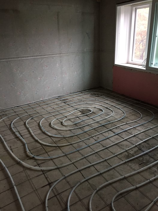 – 난방배관 설치를 완료하고 나서 바닥 수평을 맞춰 미장을 마무리합니다.