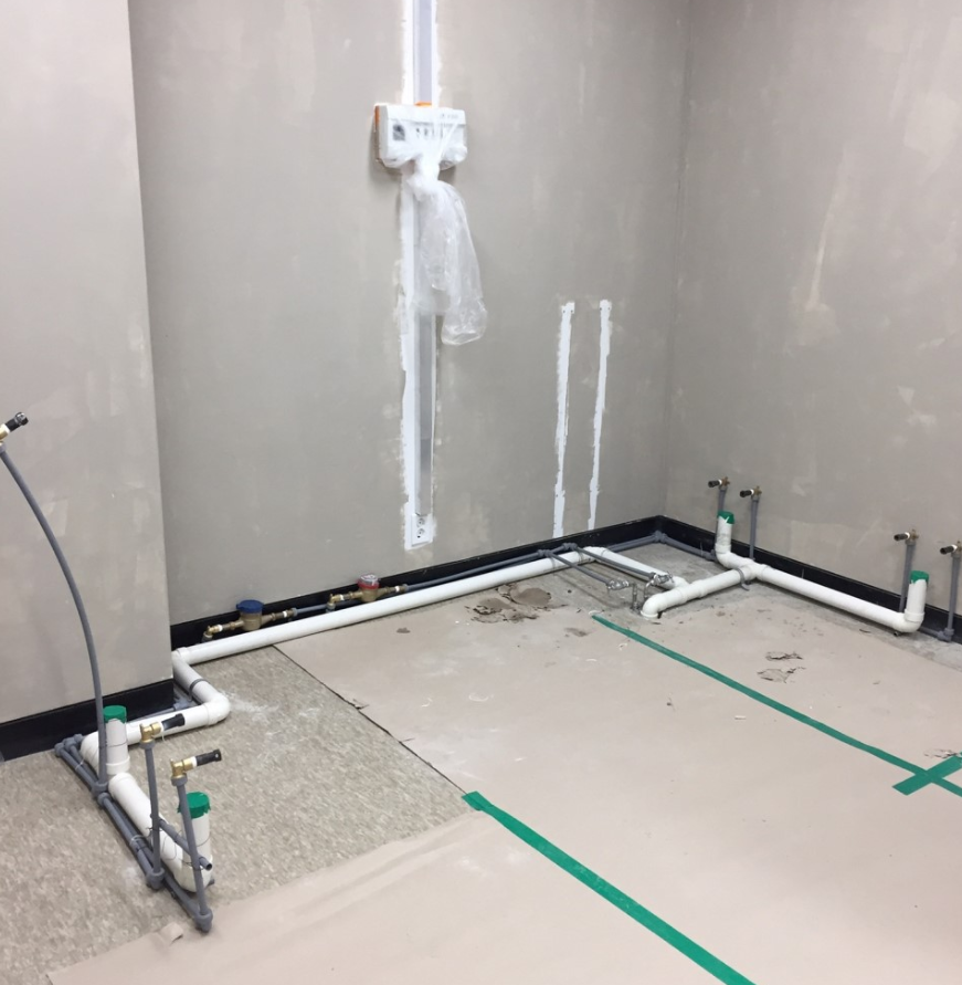수도가 설치된 자리에는 하수구 배관이 설치된 것을 볼수 있습니다.