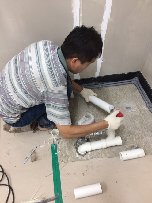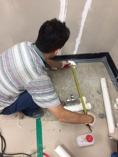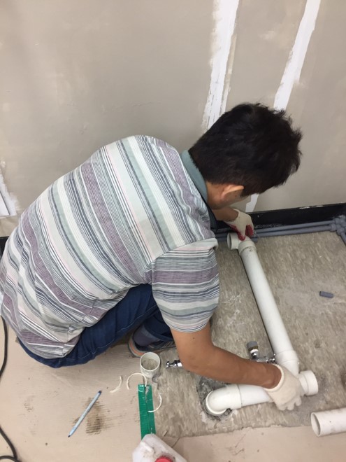 네일샵 기계에 필요한 물을 공급하기 위해 수도배관 설치를 진행합니다.