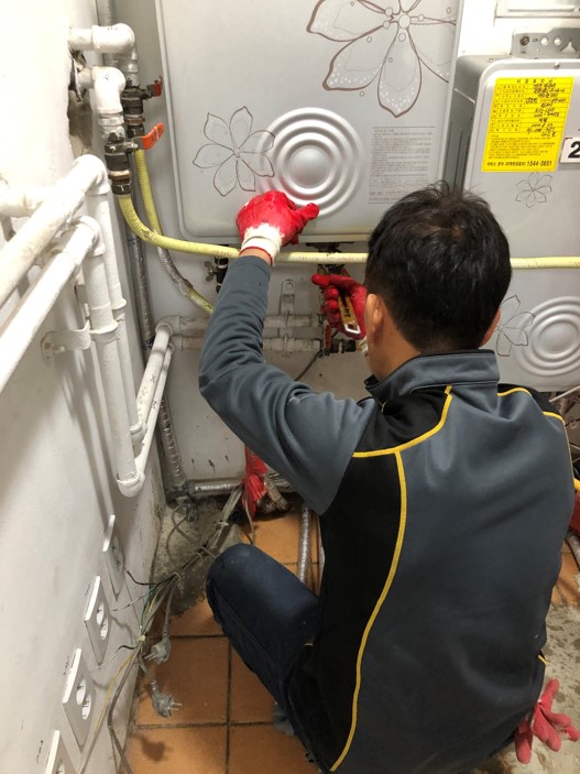① 보일러 교체를 위해 기존 보일러와 연결된 배관 및 배기통을 해체한 후 벽에 고정되어 있던 기존 보일러를 철거해 줍니다.