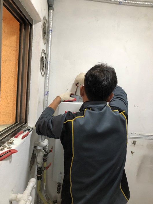 ② 기존 보일러가 설치되어 있던 자리에 새로 설치하는 보일러를 벽에 고정시켜 줍니다.